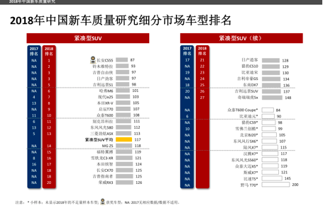 很多用户可能对这类专业研究不是很熟悉,先给大家介绍一下这两个奖项。中国质量协会全国汽车用户满意度测评(CACSI)由中国质量协会用户委员会组织举办,已有16年历史。2018年测评车型共有218个,涉及新车型44款,50家汽车厂商、60个汽车品牌、13个市场关注新车,涵盖轿车、SUV、MPV、微车和新能源汽车。J.D.Power(君迪)中国新车质量研究(IQS)始于2000年,该研究衡量的是新车车主在购车后2至6个月内经历的问题,新车质量得分以平均每百辆车问题数(PP100)表达,新车质量得分越低,表明问题数越少,质量也越好。