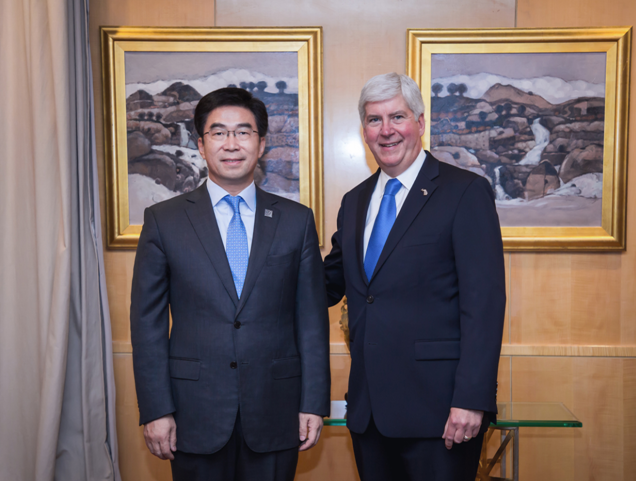 里克•斯奈德州长表示,密歇根州近年来不断发挥自身在传统汽车产业的优势,并逐步拓展智能汽车、自动驾驶、车联网等技术创新的落地,拥有全球最完善的供应链体系。近几年,Waymo,Google等创新企业也纷纷在当地设立研发中心。底特律拥有全球最先进的Mcity自动驾驶小镇。他非常希望能够通过产业扶持政策与人才优势,让更多具有实力的中国企业落户密歇根。