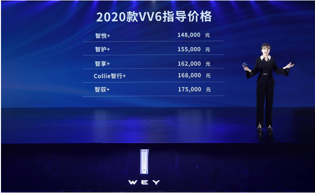 长城汽车股份有限公司副总裁兼WEY品牌营销总经理柳燕公布2020款VV6价格