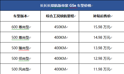 售价11.98-15.98万元,长长长续航版帝豪GSe焕新上市