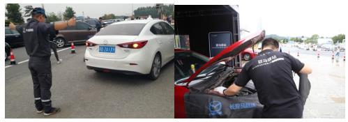 引导长安马自达车主进入检测区、检查车辆