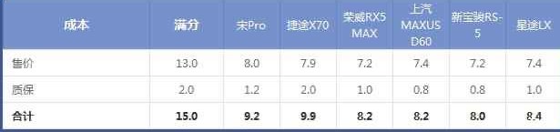 (数据来源:汽车之家——中国品牌SUV横评静态篇)