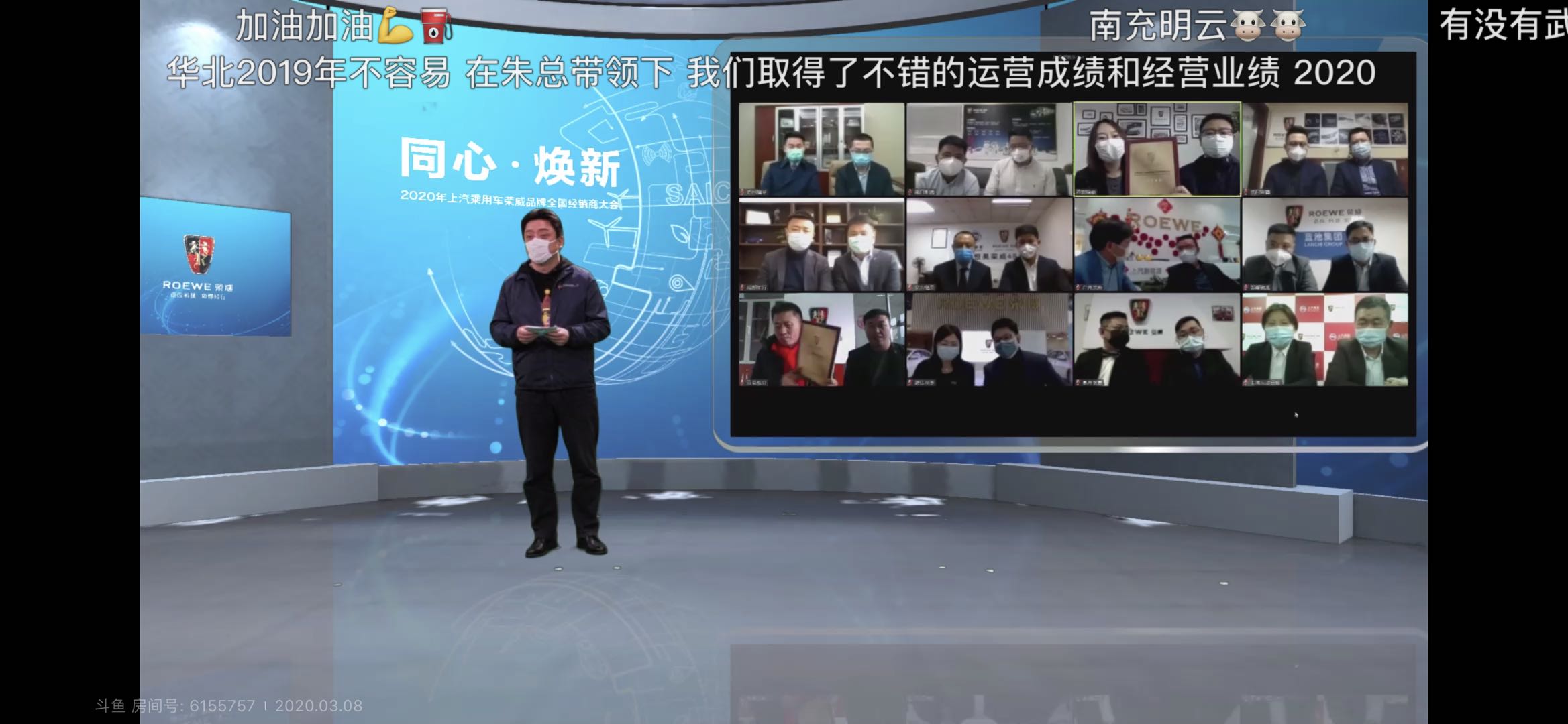 3月8日,同心·焕新——2020年上汽乘用车荣威品牌全国经销商大会在云端圆满举办。此次特殊的经销商大会是继“214情人节专场直播”、“229荣威主动净化健康舱直播”之后,上汽荣威的又一次创新线上直播互动。上汽乘用车公司副总经理俞经民、上汽乘用车公司荣威品牌营销部总监兼市场及公关部总监王建峰、上汽乘用车公司荣威品牌营销部销售总监何明磊等领导出席大会,与全国荣威经销商伙伴云端在线“齐聚一堂”。