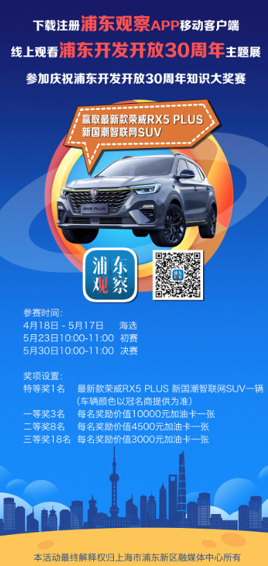 上汽荣威助力浦东开发开放30周年活动,答题可赢荣威RX5 PLUS!