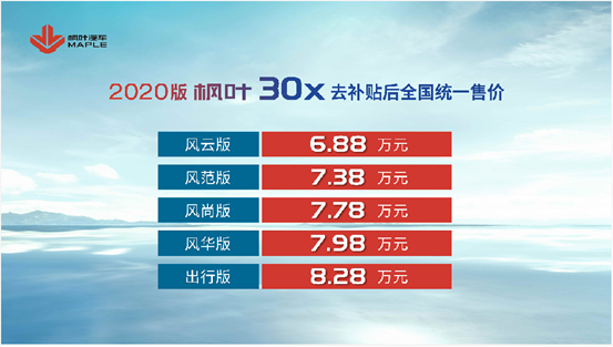 7月11日,枫叶汽车首款量产车型枫叶30X正式发布上市,新车去补贴后售价区间为6.88万-8.28万元。枫叶30X是一款定位于城市实用型的小型SUV车型。