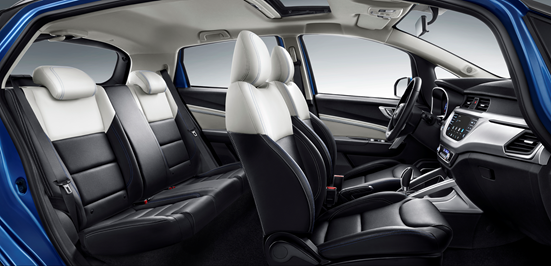 内饰设计风格简洁大方,仅在一些细节区域装饰色条辅以点缀,冷色的配色为其添加了独特的格调,彰显其作为纯电动汽车的质感与科技感。另外,枫叶30X整车内饰零部件均采用低气味、低VOC的环保材料,车内空气质量处于行业领先水平,充分保障车内人员的健康。