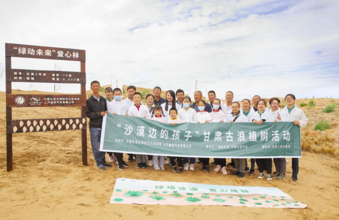 2020年9月4日 古有愚公移山,今有老汉治沙。古浪“六老汉”三代治沙人的感人事迹打动着千万人的心。为继承发扬“六老汉”的当代愚公精神,圆更多沙漠边孩子们的绿色家园梦,近日,由上汽通用汽车和中国生态文明研究与促进会联合发起的“绿动未来”环保公益平台,带领数组来自全国各地的志愿者家庭,走进甘肃古浪县腾格里沙漠,与“六老汉”传人们一同栽下6000余棵梭梭树,落成又一片“绿动未来爱心林”,为当地近300名孩子种下绿色希望。此次行动是“绿动未来”第五次为了“沙漠边的孩子”而行,也标志着平台在植树治沙之路上又迈出坚实一步。