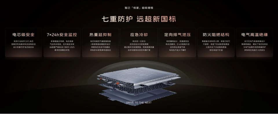 恒星超级增程的66kWh增程专属电池包,融合智己自研整包架构与宁德时代高安全电芯,达到航天级安全标准。不仅如此,热蔓延抑制等七重安全防护全面升级,远超2026年执行的最严苛新国标。新一代的安全科技,让用户在选择新能源车时,再也没有对电池安全的焦虑,为用户的每一次出行保驾护航。