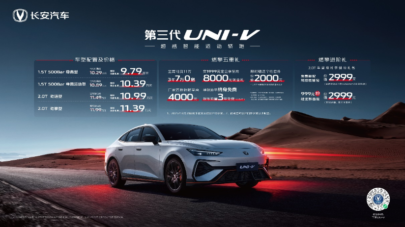 你的运动轿跑才9.79万元起!长安第三代UNI-V价格权益正式发布!