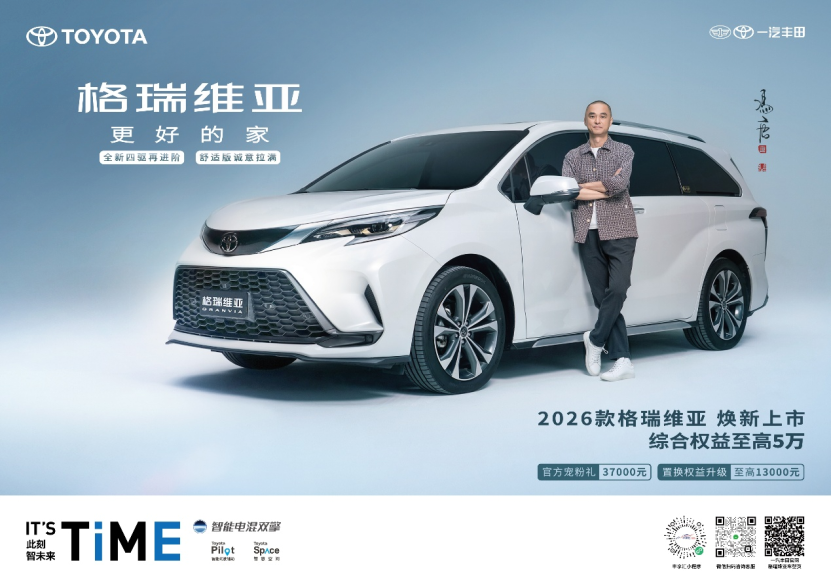 这个金秋,一汽丰田以诚意大礼和两款重磅车型的焕新上市,将先进科技与人文关怀融入到用户生活的每个细节,为用户提供了美好出行的新想象。诚如2026款格瑞维亚的口号,一汽丰田也正与用户,从我们的家到更好的家,一起创造美好,一起驶向更值得期待的新远方。