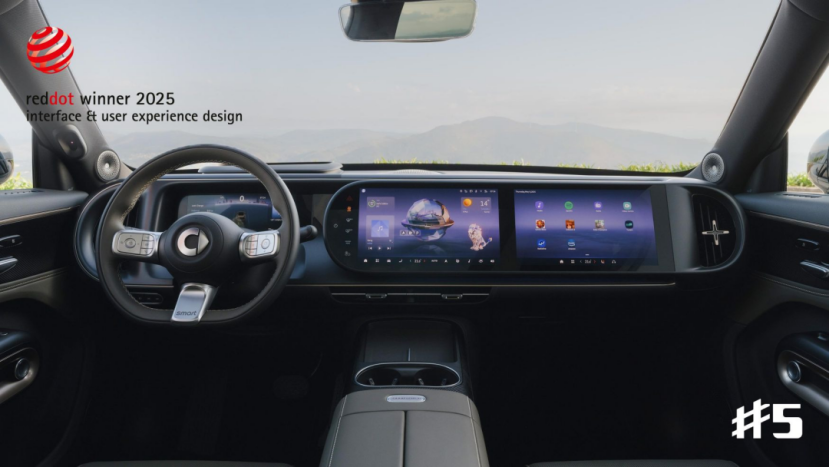作为实现这一体验的智能化核心,smart#5 EHD超级电混延续了纯电版的全球智能座舱方案,搭载亿咖通·马卡鲁®计算平台,由AMD锐龙™嵌入式V2000处理器提供支持。亿咖通·云山跨域软件平台与硬件协同,保障算力释放和smartOS的流畅稳定运行,smartOS人机交互界面(HMI)在亿咖通解决方案的强大算力和Unreal 3D渲染引擎组合下,实现了丝滑操控、流畅运行与沉浸式视觉体验,并荣获全球知名的“红点”品牌与传达设计大奖(Red Dot Design Award)。全车五屏联动实现打通车内功能域,实现信息互通和功能灵活调用,引领新奢智能座舱体验潮流。