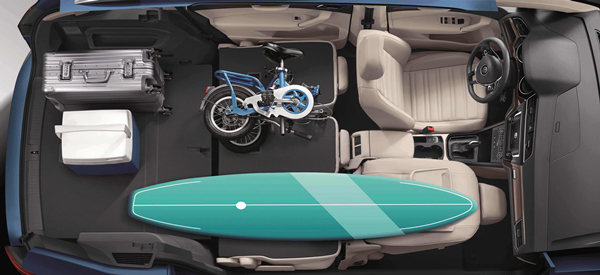 全新途安L采用平整化座椅折叠设计,并首次采用副驾驶座椅折叠功能。其舒适版与舒雅版车型除驾驶席外所有座椅均可独立翻折,大大增强了车内空间的实用性。不仅有5座车型,全新途安L还提供7座车型供选择。其后排座椅放倒后与行李箱地板齐平,配合副驾驶席放倒功能置物空间贯穿整个车身,空间实用性无懈可击。特别设计的Easy Entry便利进入系统可同时解锁座椅导轨和座椅后端锁,使座椅前移的同时向前倾斜,让出更多的空间,便于进出第三排。不仅如此,新车的实用行李箱,容积最大可拓展至1857L,还有可伸缩式行李箱遮物帘、行李箱照明灯及可连接车载冰箱的12V 电源、行李箱收纳绑带等方便使用的装备。