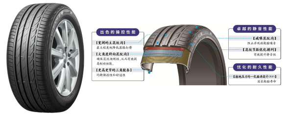 作为TURANZA泰然者系列的新一代旗舰商品,TURANZA T001专为高端车型打造,以其高科技的设计理念,将舒适驾乘与纵情驰骋完美融合,创造了“动静合一”的儒雅之美。该商品融入了纳米聚合物胎面配方、接地压力均一化胎肩设计(FCP)、减噪花纹沟设计等多项普利司通领先于行业的尖端技术,并结合创新的胎面花纹设计,带来了超凡的静音性能、抓地力以及湿路制动性能,辅佐全新BMW X1继续发挥运动操控优势,让驾驶者在体验顺畅自如的驾乘快感的同时尽情享受纵情驰骋的速度与激情。