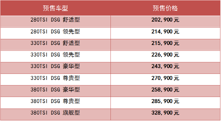 全新一代迈腾预售价格
