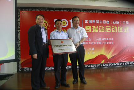日前,安徽省质量技术监督局、共青团安徽省委宣传部等领导共同为奇瑞公司颁发了“中国质量志愿者(安徽)行动基地”牌匾,由此,奇瑞公司正式成为“中国质量志愿者(安徽)行动基地”。