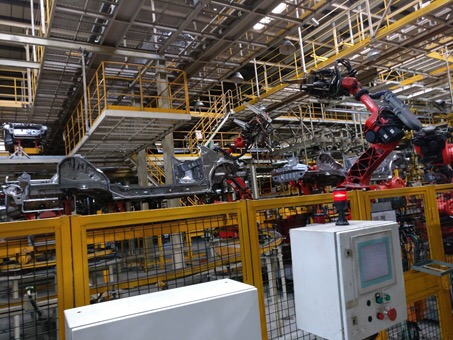 接着师生一行人又参观了奇瑞公司的生产车间和实验中心。车间清洁、明亮、有序,上百台机器人紧密配合、有条不紊,一些不得不由人工完成的部分也加入了机械臂来减轻人工操作的负担,自动化程度非常高流水线作业让一行人深深震撼。而在实验中心,据技术人员介绍,奇瑞的试验验证都是按照行业最高的标准做的,譬如坏路和误用试验就做了170多项,远远超过行业平均水平,奇瑞通过强大的试验验证能力为正向研发提供强大保障。