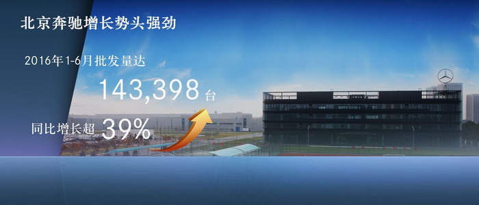 近年来,北京奔驰综合实力日趋雄厚,连续取得业绩增长。2015年,北京奔驰以产销双双突破25万辆、同比增长超过70%的耀眼成绩,完美收官十二五。到了2016年,虽然整体车市增速大为放缓,但北京奔驰依然高开高走,一季度销量达69,832辆,同比增长约43%,实现了十三五开门红。4-6月,北京奔驰销量逐月递增,从22,430辆到24,649辆,再到26,487辆,月均2000辆的增量,使北京奔驰成功实现超越式发展,为梅赛德斯-奔驰品牌在华销量贡献了2/3的份额,成为奔驰品牌实现持续增长的核心力量。
