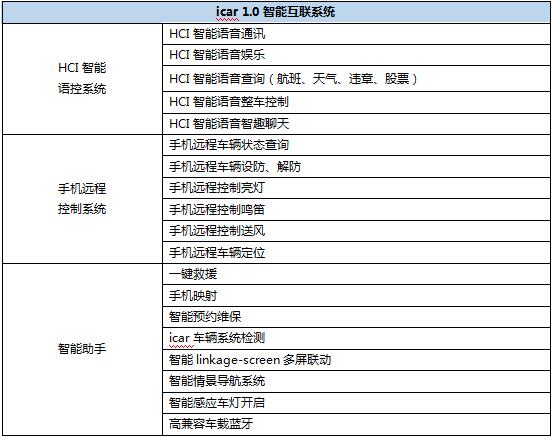 语音控制功能可以通过语音控制车辆,调温度、搜天气、查新闻、问导航等,实现一"呼"百应。同时顺应用户需求,凯翼V3还配备了双屏控制功能,可以通过手机或carpad控制车辆。最大限度的方便用户使用车辆。在智能安全方面,凯翼V3的智能助手可以一键救援、预约维保、还能自诊断,时刻给车主以关怀。