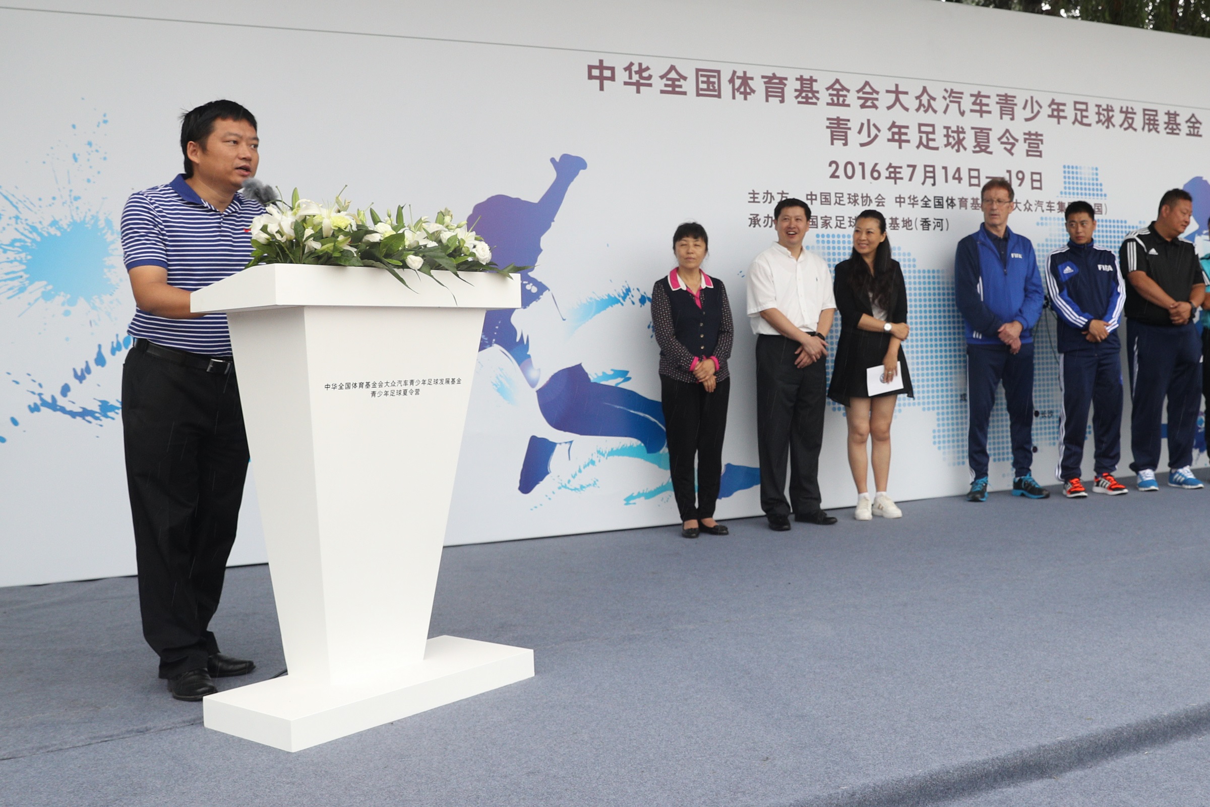 今日 , 由 大众汽车集团(中国)携手中华全国体育基金会、中国足球协会及 一 汽 - 大众、上汽大众两家合资企业 共同 发起的 2016大众汽车青少年足球夏令营 在 国家足球 训练基地 ( 香河)正式开营。 中华 全国体育基金会 基金管理部主任周旺成博士 、中国