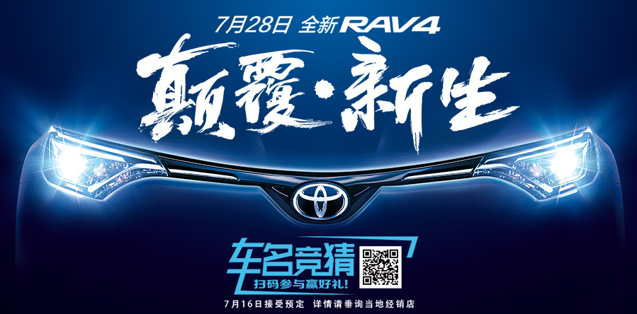 而即将推出的全新RAV4将是一款颠覆性全新车型,具体详情都将会在7月28日上市会现场揭晓,欢迎对全新RAV4感兴趣的用户到当地4S店进行垂询预订。