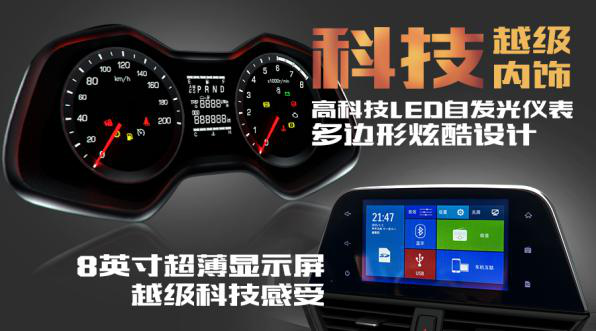 设计师借鉴了目前最新潮的电子产品设计理念——更轻更薄,并尝试将这一年轻人青睐的设计语言用在宝骏310上。超薄立式8英寸液晶显示大屏,充满了驾驶科技感与越级感。旁边的多边动感设计LED高科技仪表台与其呼应,自带3.2大英寸行车电脑液晶显示屏,在柔和白光与周边亚光电镀衬托下,让炫酷的科技感再上一阶。
