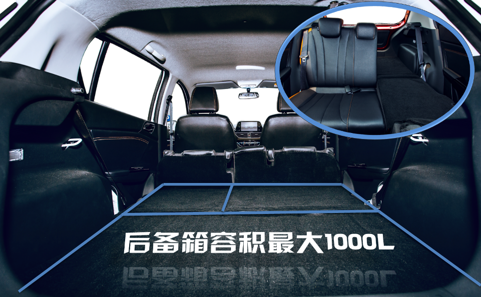 说到宝骏310的空间优势,宽敞的后备箱同样是不容忽视的一大亮点。在乘坐5人的情况下,后备箱常规容积为251L,装下3个标准的旅行箱绰绰有余。赶上小长假,一家五口想要短途出行,根本不用担心车子太小,人和行李不能兼容的尴尬。当把第二排座椅完全放平时,后备箱和座椅形成了一个纯平的储物空间,最大容积可达到1000L。不论是容量还是平整度,宝骏310的表现都是十分抢眼的。对于野营郊游所需要的帐篷、烧烤架、钓鱼竿等大件物品,宝骏310也都能轻松收入囊中。对于长途驾驶的车主而言,放下疲惫,在车上躺一躺也是极为惬意的。同时,第二排座椅还支持4/6拆分式放倒,在乘坐3-4人的同时,拥有不错的储物能力,使用起来非常便利!