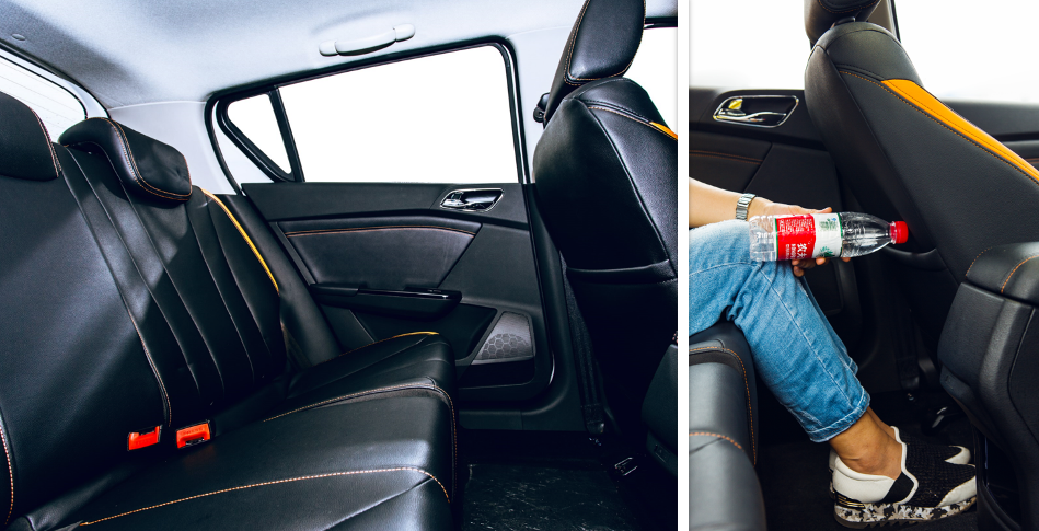 除了观察数据,我们还做了简短的实际体验。我们惊喜地发现,真正坐上去以后,轴距的优势更加明显。体验者身高174cm,身材中等,将前排调至舒适后仰的位置,后排腿部距前排座椅仍能达到一瓶矿泉水的长度!这样的表现不得不令人惊叹。并且,坐姿舒适、地板平整,3人并排而坐依然毫无压力。