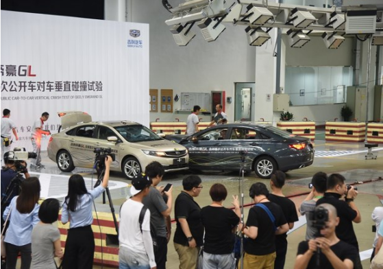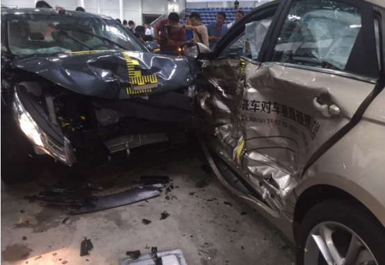8月5日,C-NCAP进行了全球首次公开车对车垂直碰撞试验,吸引了各界高度的关注。此次参加碰撞的为吉利帝豪GL车型,目标车以16.7km/h的速度向前行驶,子弹车以50km/h的行驶速度垂直撞上目标车。试验速度与形态真实模拟了十字路口经常发生的违章交通事故。