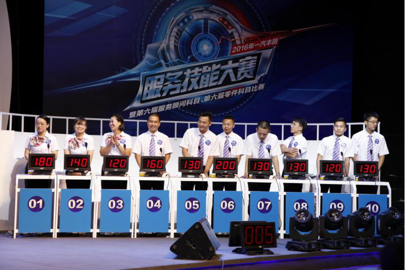 8月27日,2016年一汽丰田服务技能大赛在北京星光影视园举行。来自一汽丰田全国500多家经销店的579名选手,经过初赛、复赛的重重考验,脱颖而出的20名选手登上决赛的舞台,进行服务顾问和零件两个科目的激烈角逐。最终,来自沈阳铁西华通丰田汽车销售服务有限公司的付科柔获得“服务顾问”科目冠军,来自银川上陵丰田汽车销售服务有限公司的李强获得“零件”科目冠军。