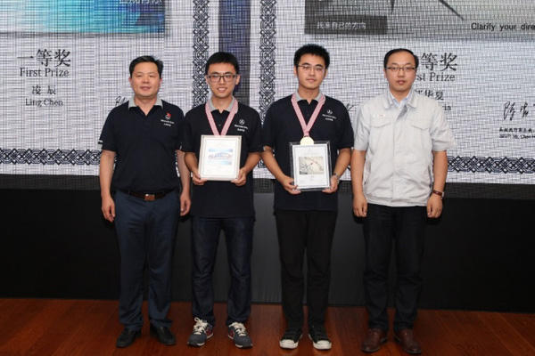 北京汽车党委委员、纪委书记李双双与北京奔驰党委书记,高级执行副总裁陈宏良为海报设计大赛一等奖颁奖