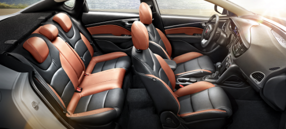 比如菲翔拥有之前只出现在豪华车上的Nappa真皮座椅,触感细腻;17吋马牌轮胎,以前在奔驰、宝马、奥迪等豪车上才常见的轮胎品牌,静音性、舒适性绝非同级可比;8.4英寸超大触摸屏装载U-connect™智能人机互动系统,集高精度导航、高清倒车影像、空调、座椅控制等智能应用于一体,响应迅速更便于操控;赛车级Brembo刹车系统,响应时间更快,更及时,且刹车距离更短,跑得快还能刹得住;意大利ASK高保真环绕音响音质出众,让人犹如聆听天籁;此外还有定速巡航、一键启动及无钥匙进入系统、双区独立自动空调等20多项超越同级的大牌配置,保证驾乘者都舒适,即使玩得再嗨,也能舒舒服服开回家。