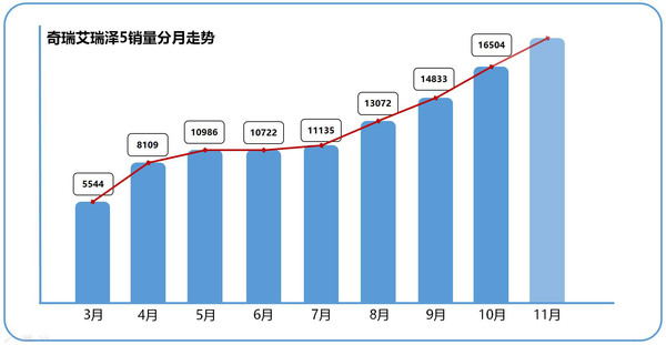 随着奇瑞进入战略转型2.0阶段,奇瑞销量正式进入快车道,其中尤以首款2.0车型艾瑞泽5表现最为耀眼。日前记者获得消息,艾瑞泽5自今年3月上市以来,在短短253天时间里新车用户已超过10万。数据显示,艾瑞泽已连续7个月销量破万,11月份再创新高即将突破2万辆,平均日销近400辆,成为中国品牌上市最快达到10万辆销量的新车,无可争议跻身自主销量增速王者宝座。