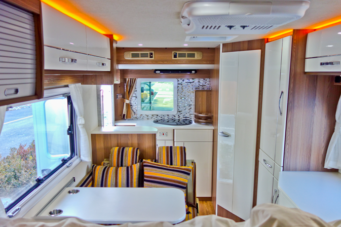 新款GX599卧具、炉具、冰箱、橱柜、衣柜、沙发、餐桌、盥洗设施、空调、电视、音响等家俱,“衣、食、住、行”类生活起居系统一应俱全。温控系统采用行车空调、驻车冷热空调、驻车暖风系统、地暖组合式方案,让温度时刻随需求而变。娱乐系统采用内部多声道高级音响、外置多媒体游艇专用户外音响、19寸液晶卫星电视组合方案,让户外生活更加多彩。厨房系统采用室内厨房:多功能料理台、燃气水盆一体灶、抽油烟机,与车身外拉式厨房相结合,配合户外烧烤厨具可以实现各类美食随车相伴。