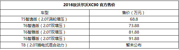 2016款沃尔沃XC90(沃尔沃称之为“升级版”)近日正式上市,T5与T6车型的售价区间为68.80-91.88万