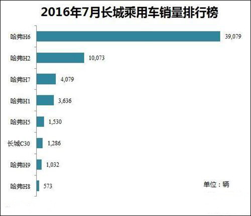 主攻SUV市场的长城汽车以销量证明了其在SUV市场的成功,旗下哈弗H6长期稳居SUV界销量冠军。今年7月哈弗H6销量实现近4万辆至39,079辆,同比大涨69.3%,在长城乘用车市场销量占高达63.8%。今年月度销量均实现了两位数的增长,同时,1-7月份销量累计实现279,332辆,同比上涨42.3%。