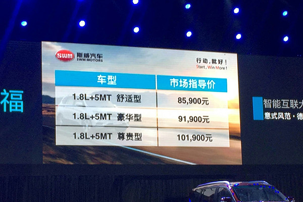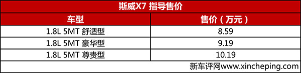 华晨鑫源斯威品牌首款SUV——斯威X7于今晚(8月30日)正式上市,新车先期推出搭载1.8L发动机的共计三款车型,售价区间为8.59-10.19万元。