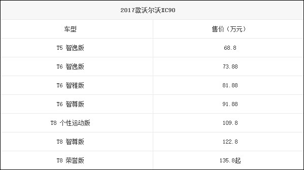 2017款沃尔沃XC90上市 售68.8-122.8万