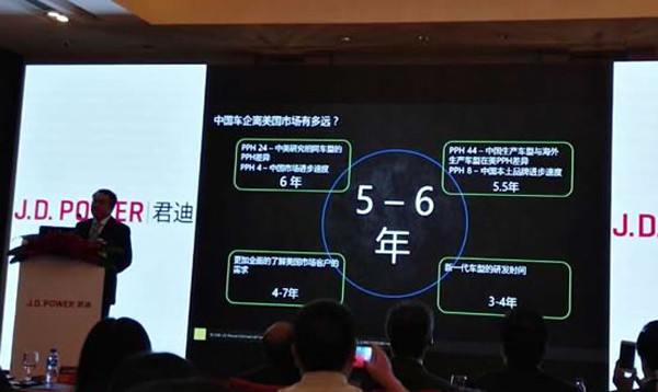 在J.D.Power的调查数据中发现,中美市场消费者对于新车的质量感知存在巨大的差异。在2016中美IQS研究中均涵盖的14款豪华车型(非国产),美国消费者比中国消费者每百辆车多了24个问题,而且在前十大问题中仅有一个是相同的:中国消费者更注重感官体验,美国消费者更注重使用体验。结合中国IQS中中国新车质量的进步速度和新车研发周期,蔡明认为,中国车企离进入美国市场还有5-6年的时间。