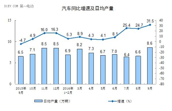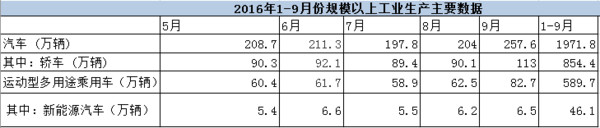 根据国家统计局公布的数据显示,2016年9月我国新能源汽车产量达6.5万辆,较之上月6.2万辆的产出水平呈现稳步攀升,与去年同期相比实现66.7%的增幅。今年1-9月新能源汽车累计产量已达46.1万辆,同比增长83.7%,在规模以上工业生产中呈现较强增势。