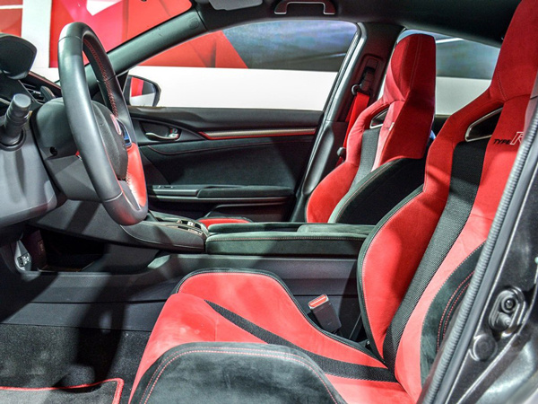 新车的座椅由德国RECARO品牌代工,仍采用红黑双色的配色,材质则是Alcantara与织物拼接而成。可以看到,新车的座椅靠背上方绣有TYPE R专属LOGO,其两侧孔位为车主提供了自行扩展安装四/五/六点式赛车安全带的便利。此外,新车的原厂三点式安全带也由红色材料编织而成。