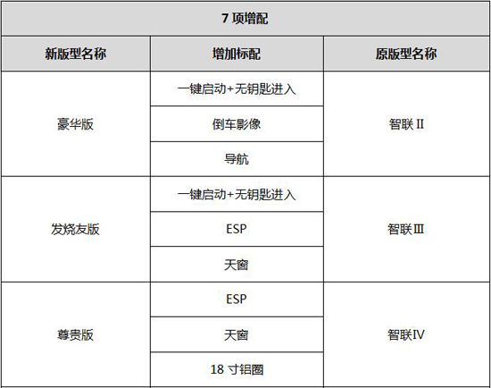 此次2017款凯翼X3在原版型基础上进行了7大增配77项升级,其中新车根据版型的不同,标配有ESP、3D智能包、倒车影像、导航、18寸铝圈、天窗、一键启动+无钥匙进入等共计7项配置。同时,在品质方面,2017款凯翼X3实现了12项NVH升级,35项细节工艺升级,而智能方面做到了30项软件优化及系统升级。