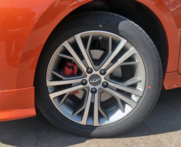 在车身侧面,新车换装了一套17英寸密辐式双色轮圈,搭配红色刹车卡钳与205/50 R17规格的轮胎,造型更加运动。此外,新车还在车门下方增加了一根侧裙,使得车辆在视觉上更加低矮、更具跑车风格。