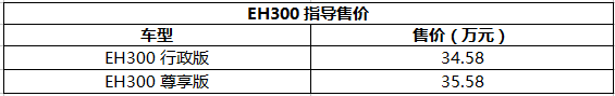 售34.58/35.58万 北汽新能源EH300上市