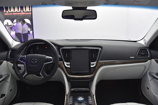 外观方面,EH300车型造型比较大气,车身尺寸长宽高分别为4946mm*1860mm*1483mm,轴距为2830mm。内饰设计上,新车与在售的绅宝D80基本保持一致,内饰整体采用黑白双色设计。新车最大的特点是配备有一款10英寸液晶显示屏,并集成手机互联、空调控制以及多媒体等。同时新车采用了2+2的四座行政设计以及11扬声器的配备,并在后排增加有液晶显示屏。