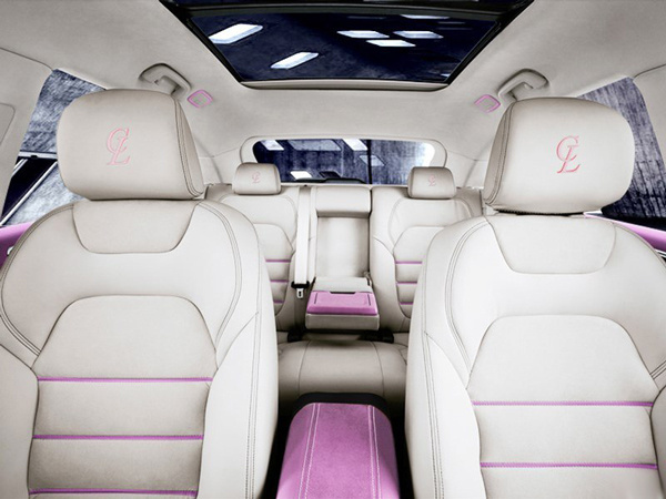 和外观一样,SR9女神定制版的内饰使用了大面积的粉色元素,其中四个车门装饰板及支持扶手、手套箱扶手、后排支撑扶手均采用NAPPA皮进行包覆,搭配浅色的座椅,少女气息十足。作为定制版车型,新车的头枕还配有由粉色丝质缝线刺绣而成的专属定制图案或文字,具有一定档次感。此外,新车还为女性乘客提供防意外走光的“女神伞”,以及美妆可用的“Dior”限量版彩妆盒。