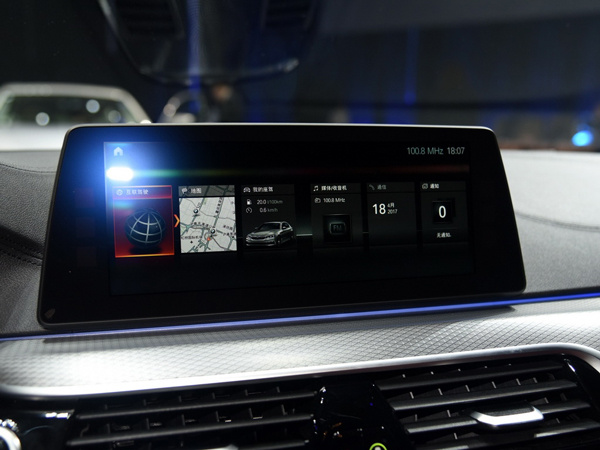全新5系搭载iDrive 6.0系统,支持手势操作和语音控制,中央10.25英寸显示屏提供3D导航、电话、娱乐、车辆信息以及互联网服务,同时全新5系还配备有苹果CarPlay系统和车载Wi-Fi功能(最多可连接10个设备)。