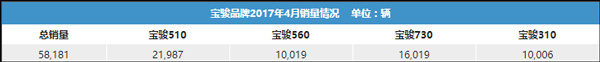 上汽通用五菱4月总销量为160,061辆,其中五菱品牌共售出101,880辆,宝骏品牌销量为58,181辆,占总销量的36.3%。