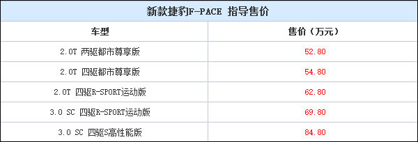 售52.8-84.8万 新款捷豹F-PACE正式上市