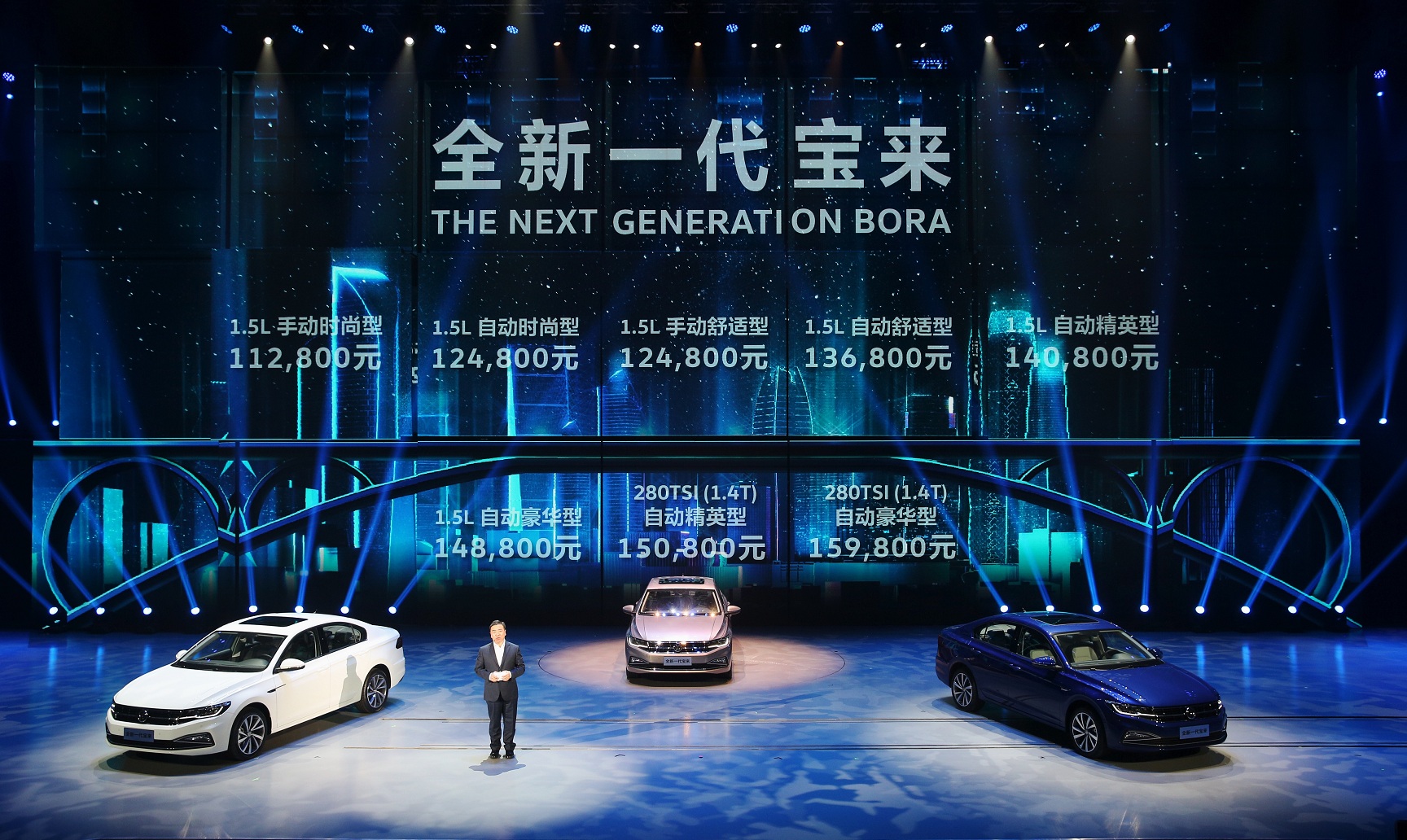 配图:一汽-大众汽车有限公司商务副总经理、一汽-大众销售有限责任公司总经理董修惠现场公布全新一代宝来市场指导价
