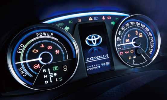 除了外观的混动标识之外,在内饰方面,卡罗拉双擎也拥有混合动力车型的专属设计。卡罗拉双擎采用了混合动力车型特有的仪表盘以及专属中控台,用3种驾驶模式显示取代了传统的转速表,当指针进入PWR区域的时候,指针还会配合车辆行驶状态而变为红色,提升驾驶乐趣。